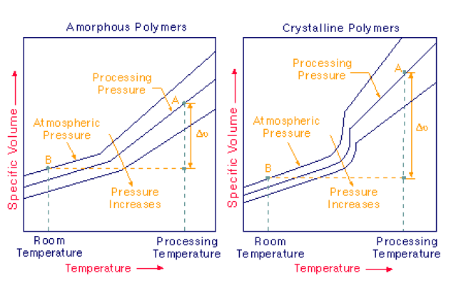 结晶塑料和无定型塑料收缩和翘曲示意图